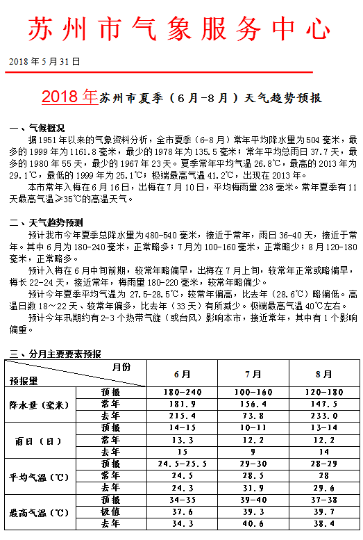 附:苏州市(6~8月)长期天气趋势预报